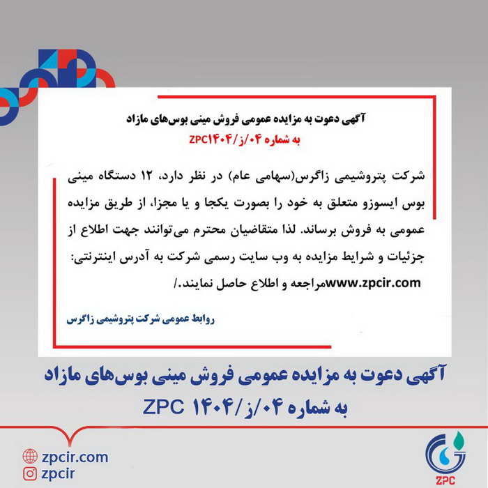 آگهی دعوت به مزایده عمومی فروش مینیبوسهای مازاد شرکت پتروشیمی زاگرس