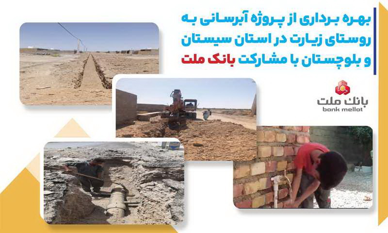 به گزارش گویای خبر به نقل از روابط عمومی بانک ملت، با اجرای این پروژه که با مشارکت بانک ملت و شرکت مهندسی آب و فاضلاب کشور صورت گرفت، روستای «زیارت» از توابع شهرستان سیب و سوران در جنوب استان سیستان و بلوچستان که تا پیش از به صورت سیار آبرسانی می شد، با 14 کیلومتر لوله گذاری به شبکه آب شرب پایدار متصل شد.