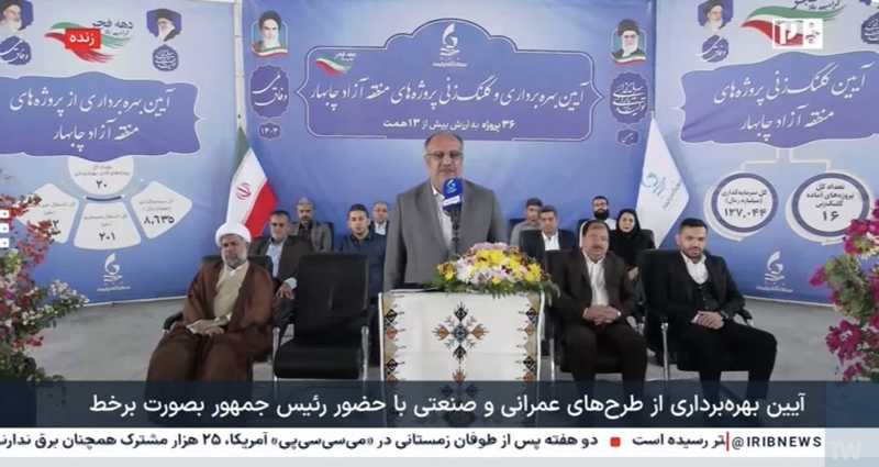 صبح امروز شنبه، ۲۰ طرح تولیدی، صنعتی و زیرساختی با مجموع سرمایهگذاری هشت هزار و ۶۳۵ میلیارد ریال در منطقه آزاد چابهار با دستور رییسجمهور بهصورت ویدیو کنفرانس افتتاح شد.