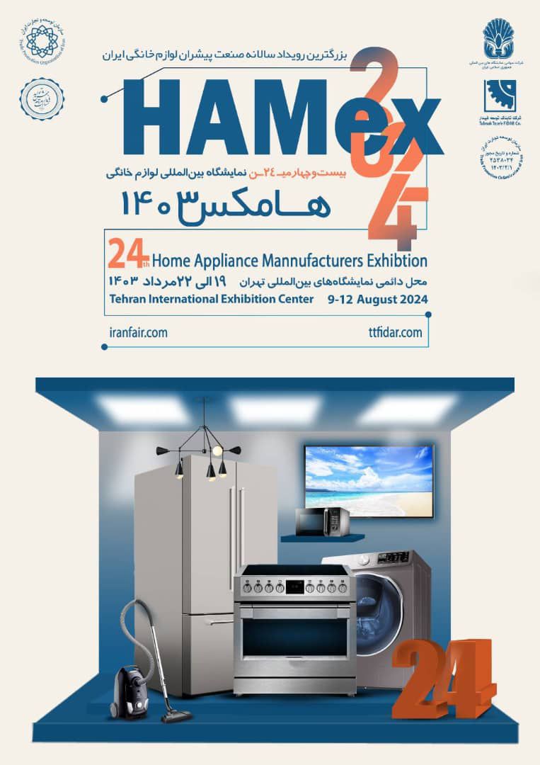 بیستوچهارمین نمایشگاه بینالمللی صنعت لوازم خانگی (هامکس ۱۴۰۳) در مساحتی بالغ بر ۲۲ هزار متر مربع و با حضور حدود ۳۰۰ شرکت خارجی و داخلی در گروه کالایی لوازم خانگی انرژیبر (لوازم برقی و گازی و قطعهسازان) طی چهار روز از ساعت ۸ صبح الی ۱۵ عصر در محل دایمی نمایشگاههای بینالمللی تهران دایر خواهد بود.