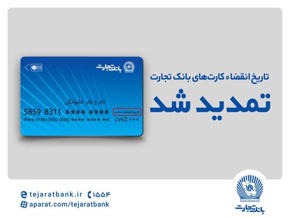 تاریخ انقضای کارتهای بانک تجارت تمدید شد