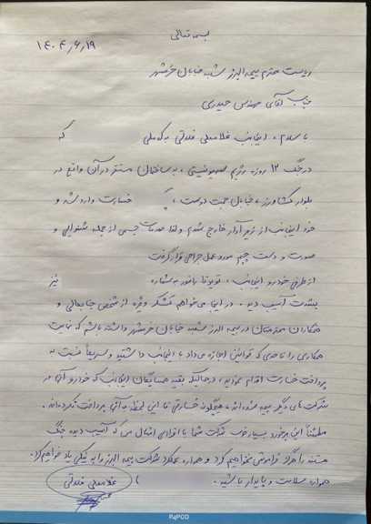 به گزارش گویای خبر به نقل از روابط عمومی و امور بینالملل بیمه البرز، یکی از بیمهگذاران شرکت بیمه البرز که در جریان جنگ ۱۲ روزه ایران و اسرائیل دچار آسیبدیدگی شده و محل سکونت و خودروی شخصیاش خسارت دیده بود، با ارسال نامهای از پیگیری و پرداخت سریع خسارت توسط شعبه پرداخت خسارت خیابان خرمشهر تهران تقدیر کرد.