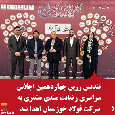 در این مراسم از شرکت فولاد خوزستان بر اساس ارزیابی‌های انجام شده توسط کمیته علمی، تقدیر و در همین راستا تندیس زرین رضایت‌مندی مشتری به فولاد خوزستان اهدا شد.
