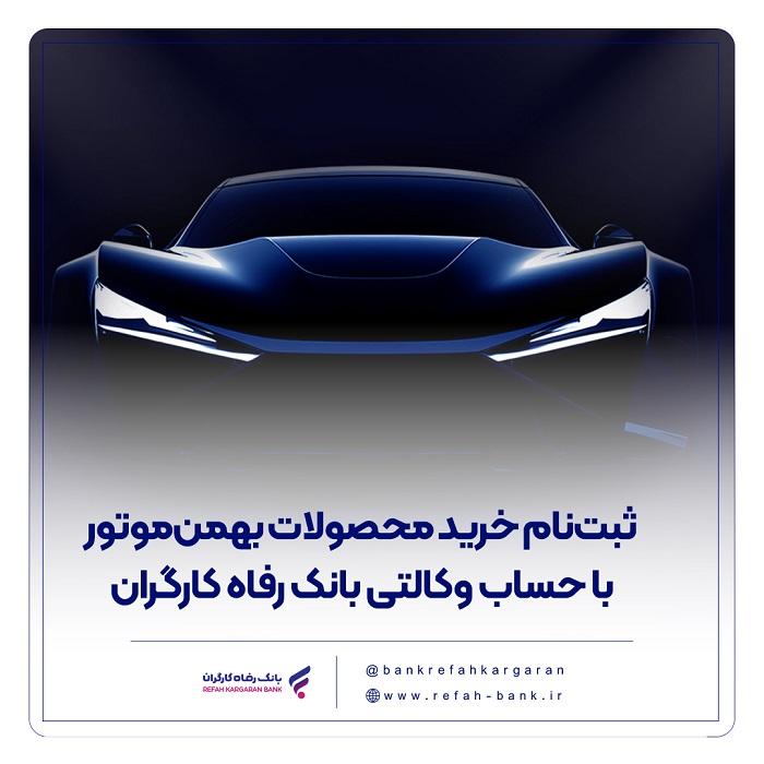 ثبتنام خرید محصولات بهمنموتور با حساب وکالتی بانک رفاه کارگران