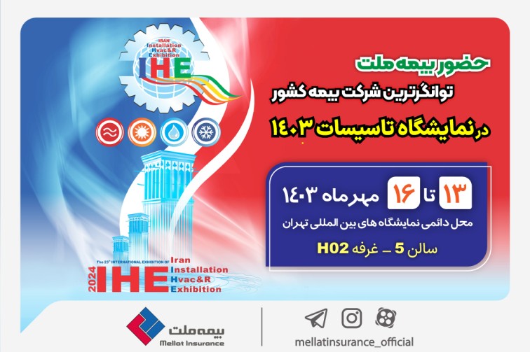 بیمه ملت، توانگرترین شرکت بیمه کشور در بیست و سومین نمایشگاه بینالمللی تاسیسات ساختمان، سیستمهای سرمایشی و گرمایشی تهران سال ۱۴۰۳ حضور فعال دارد.