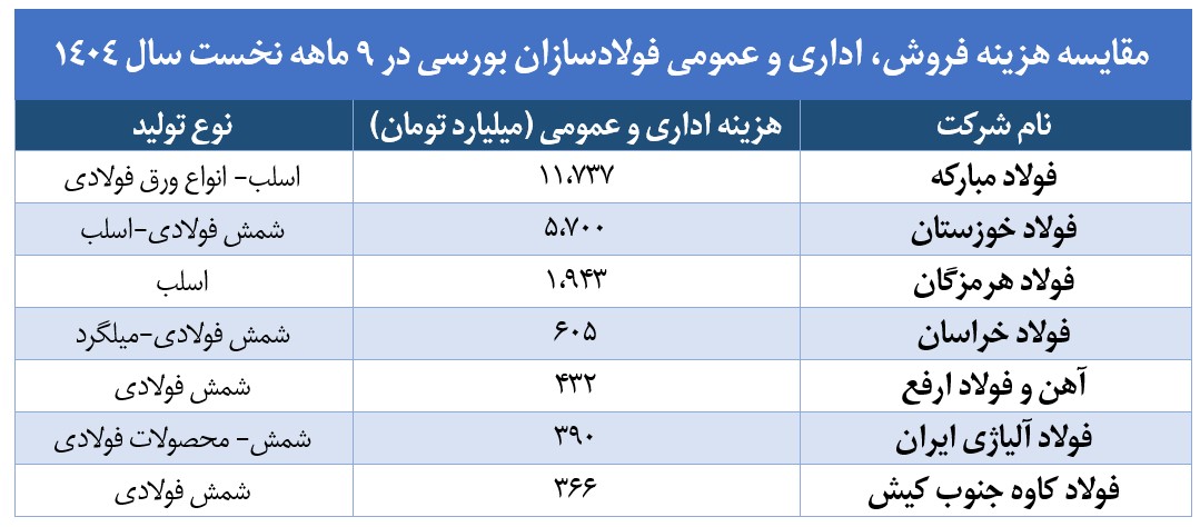 مقایسه هزینه اداری و عمومی فولاد کاوه جنوب کیش با سایر فولادسازان