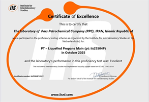 آزمایشگاه شرکت پتروشیمی پارس (PPC) موفق شد گواهینامه عملکرد ممتاز (Certificate of Excellence) را در آزمون مهارتآزمایی بینالمللی از موسسه مطالعات بینآزمایشگاهی (IIS) هلند دریافت کند.