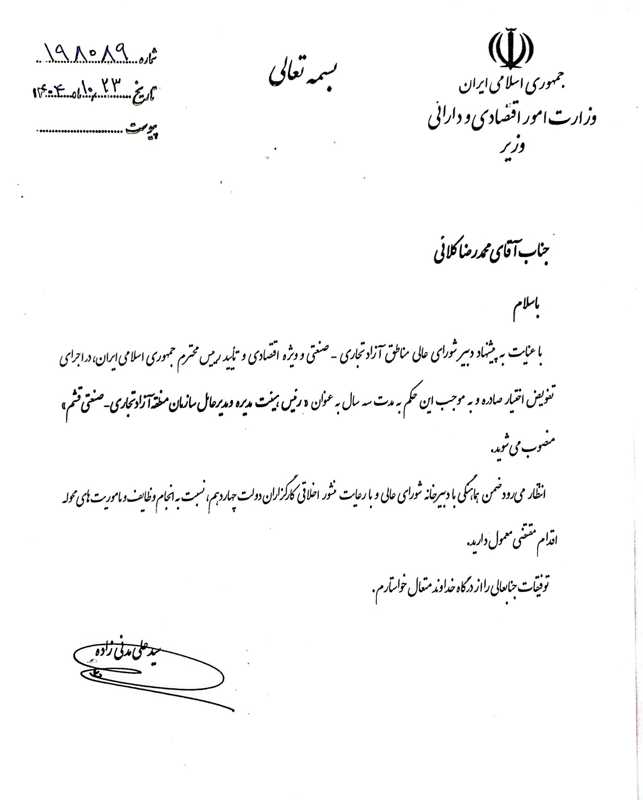 مدیرعامل سازمان منطقه آزاد «قشم» منصوب شد