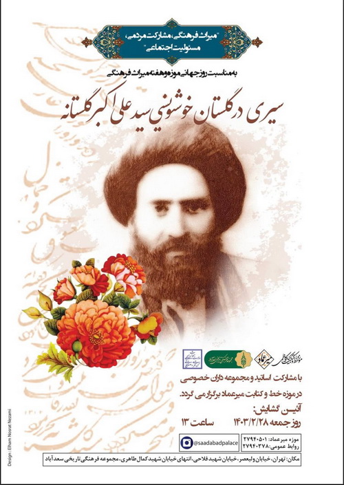 نمایشگاه سیری در گلستان خوشنویسی سید علی اکبر گلستانه از خوشنویسان صاحبنام دوره قاجاریه روز جمعه ۲۸ اردیبهشتماه ساعت ۱۳ در موزه خط و کتابت میرعماد افتتاح شد.