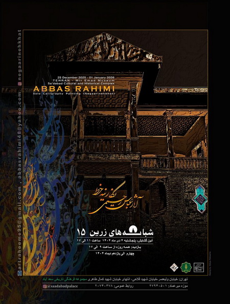 آیین گشایش نمایشگاه خوشنویسی «شبانه‌های زرین» به شیوه نگارینه خط، روز پنج‌شنبه چهارم دی‌ماه با نمایش آثار استاد عباس رحیمی در مجموعه فرهنگی تاریخی سعدآباد «موزه خط و کتابت میرعماد» برگزار می‌شود.