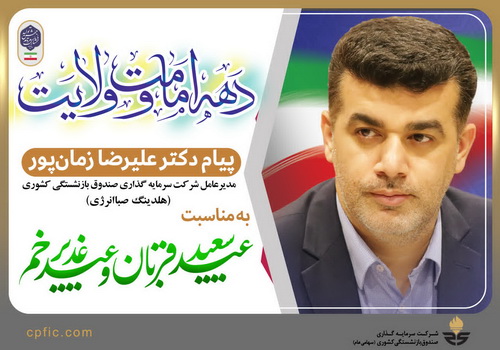 مدیرعامل شرکت سرمایهگذاری صندوق بازنشستگی کشوری (هلدینگ صباانرژی) به مناسبت دهه ولایت و امامت (عید سعید قربان و عید سعید غدیر) پیامی صادر کرد.