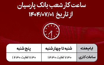 اعلام ساعت کار شعب بانک پارسیان در نیمه دوم سال1404