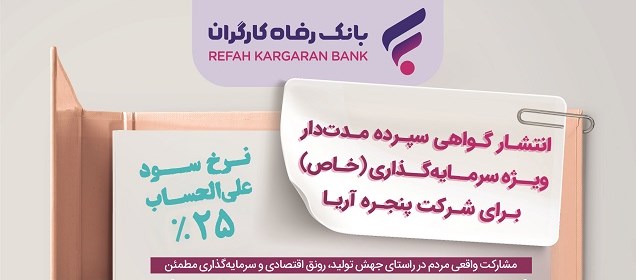 انتشار اوراق گواهی سپرده خاص برای شرکت پنجره آریا از سوی بانک رفاه کارگران