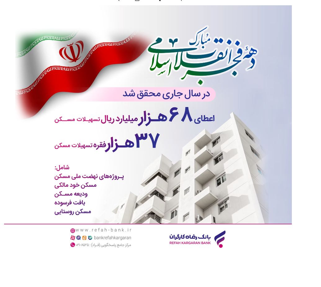 بانک رفاه کارگران از ابتدای اجرای قانون جهش تولید مسکن تاکنون بالغ بر 85 هزار فقره تسهیلات مسکن به مبلغ…