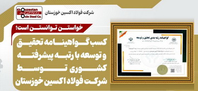 کسب گواهینامه تحقیق و توسعه با رتبه پیشرفته کشوری توسط شرکت فولاد اکسین خوزستان