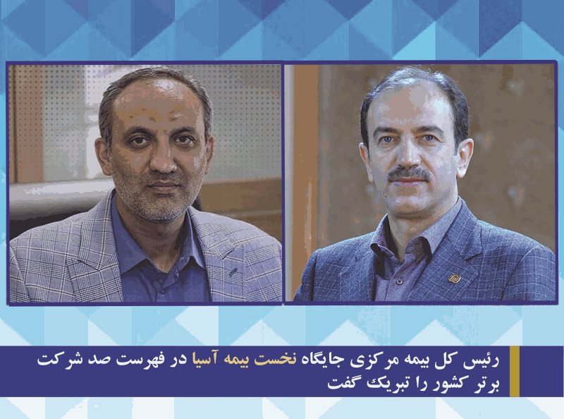 رییس کل بیمه مرکزی جایگاه نخست بیمه آسیا در فهرست صد شرکت برتر کشور را تبریک گفت