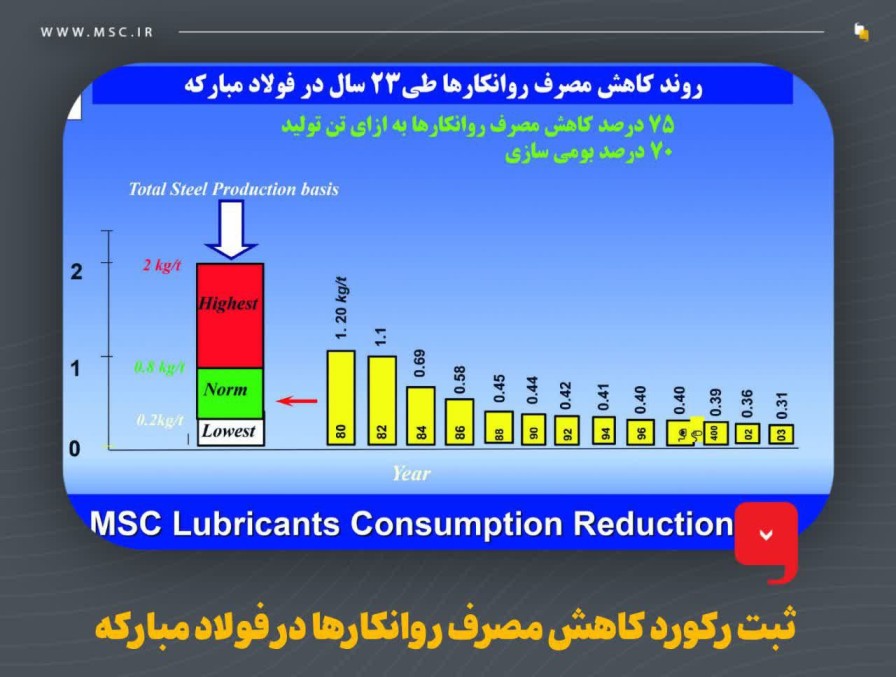 ثبت رکورد کاهش مصرف روانکارها در فولاد مبارکه