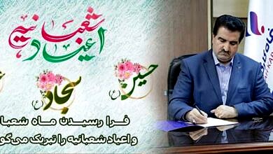پیام تبریک مدیرعامل بانک رفاه کارگران به مناسبت فرا رسیدن اعیاد شعبانیه