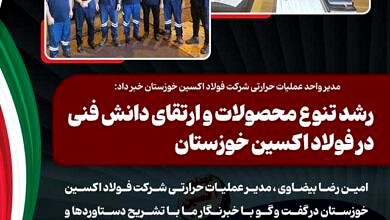 - رشد تنوع محصولات و ارتقای دانش فنی در فولاد اکسین خوزستان